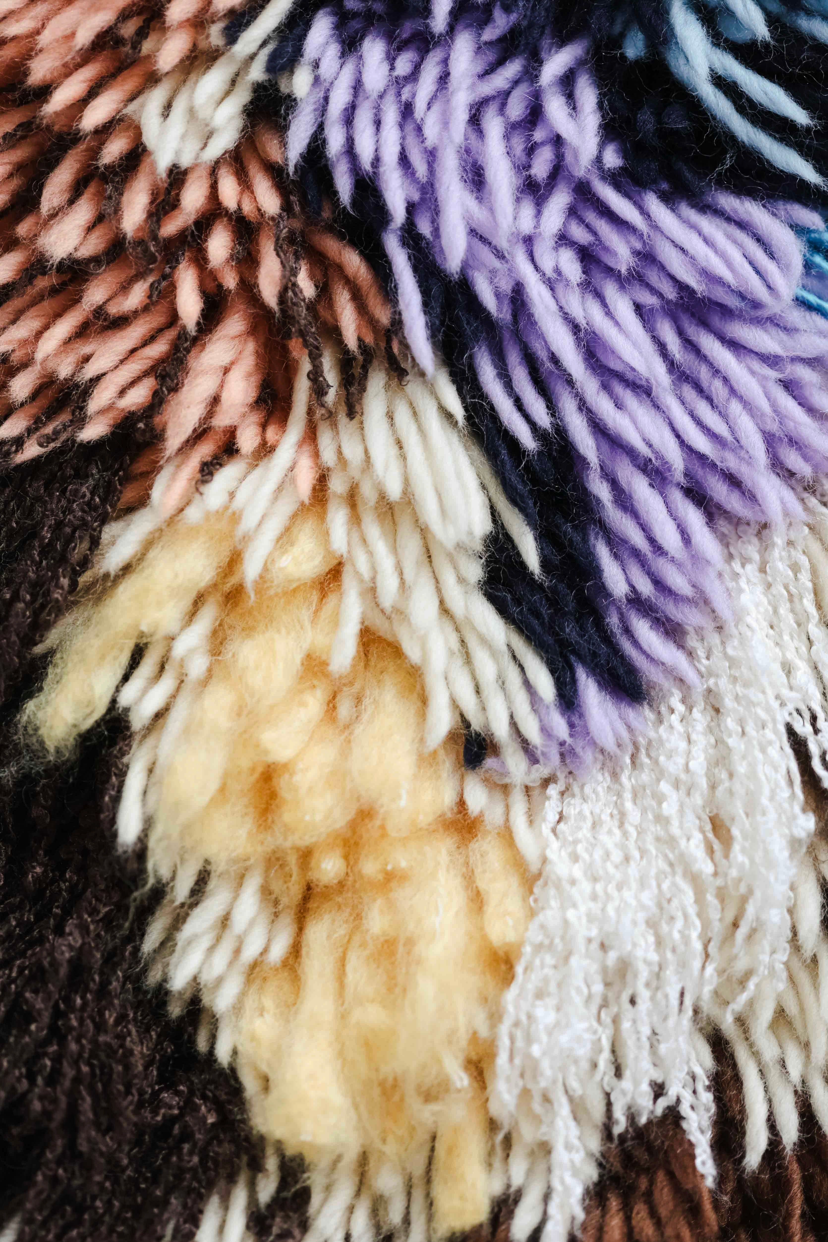 A study in texture and colour. Ultra-soft brushed cashmere you melt into, contrasted with fine boucle silk and premium Italian wool. Each section is hand-knitted with yarns of different lengths and sizes, creating a surface rich in dimension, pattern, and movement.
