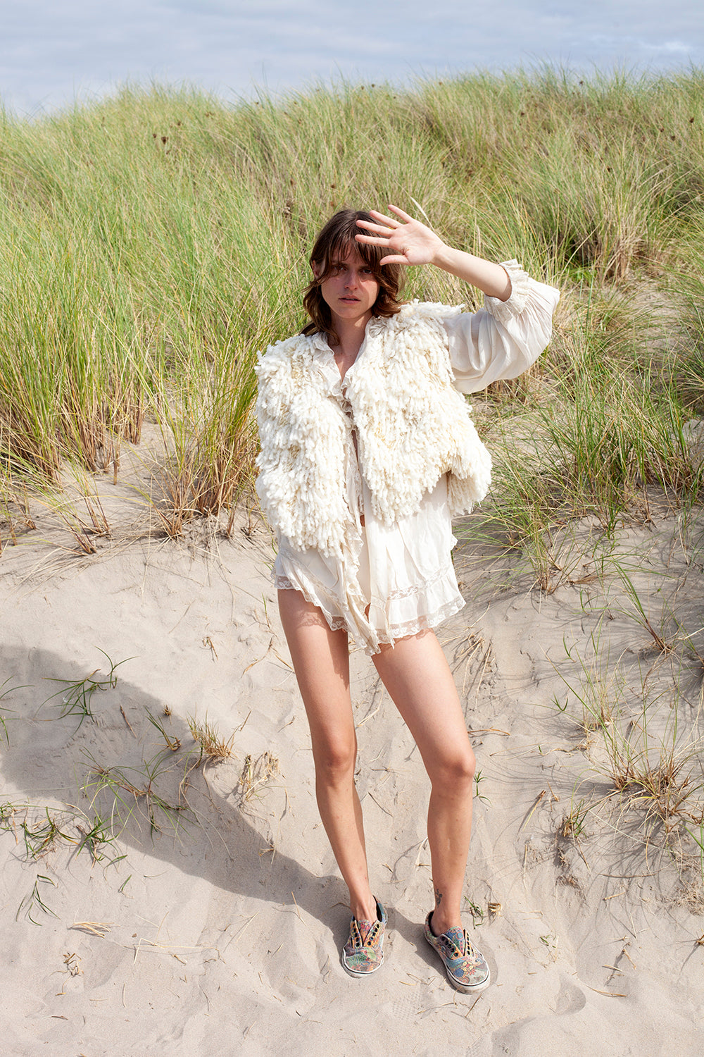 Long fur-stitch strands create softness, density, and sculptural drape. Biased towards presence, the pieces remain versatile - scarves, snoods, and waistcoats designed to move effortlessly between statement and ease.